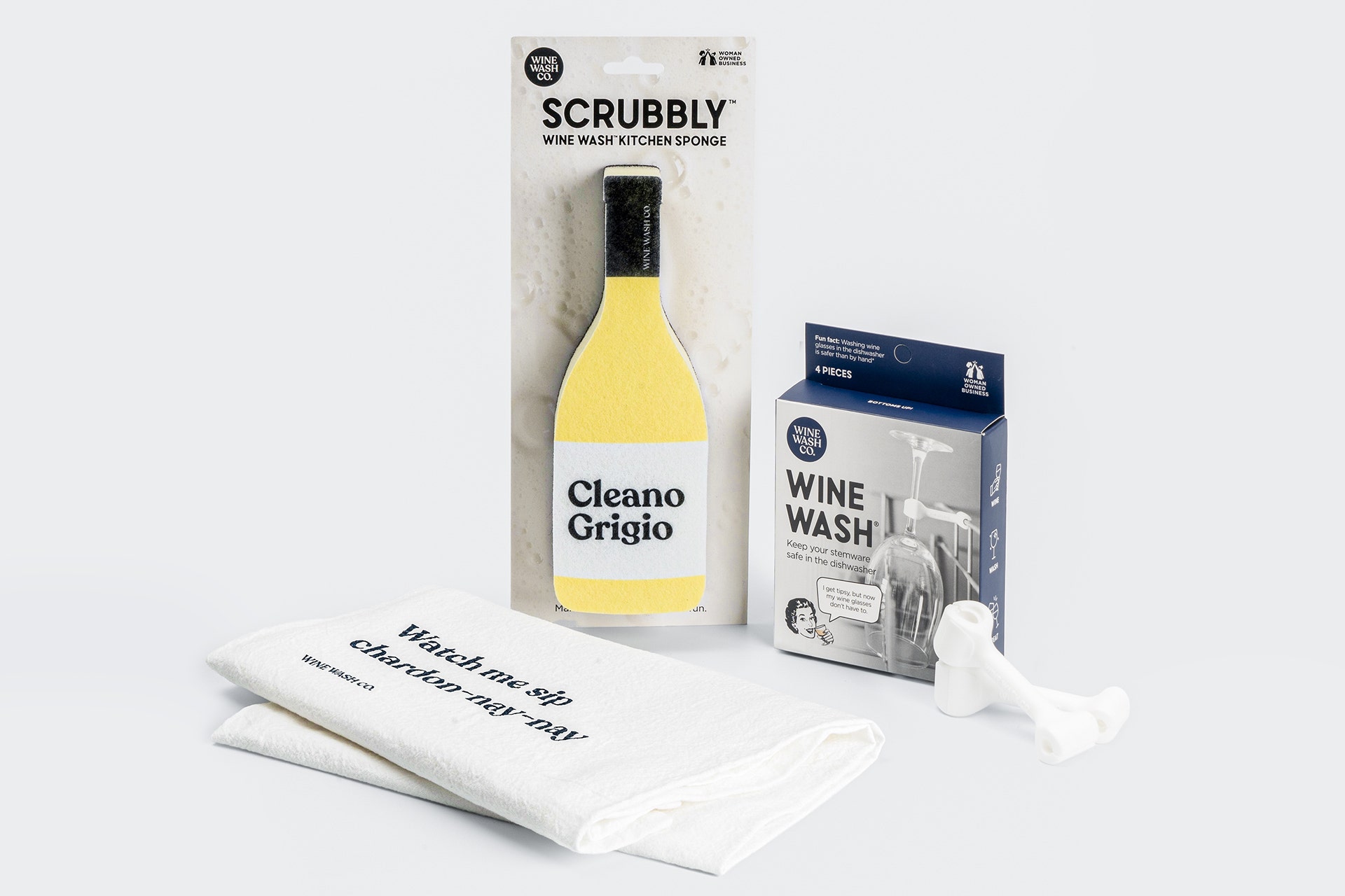 This 3-piece bundle is perfect for those looking to wash their glasses in a pinch. For dishwasher users, the WineWash attachment helps keep your wine glasses upright to unwanted clatter during a cycle. Plus, the colorful bottle-shaped sponge sponge and fun cotton towel make a perfect accessory to your hand-cleaning lineup.