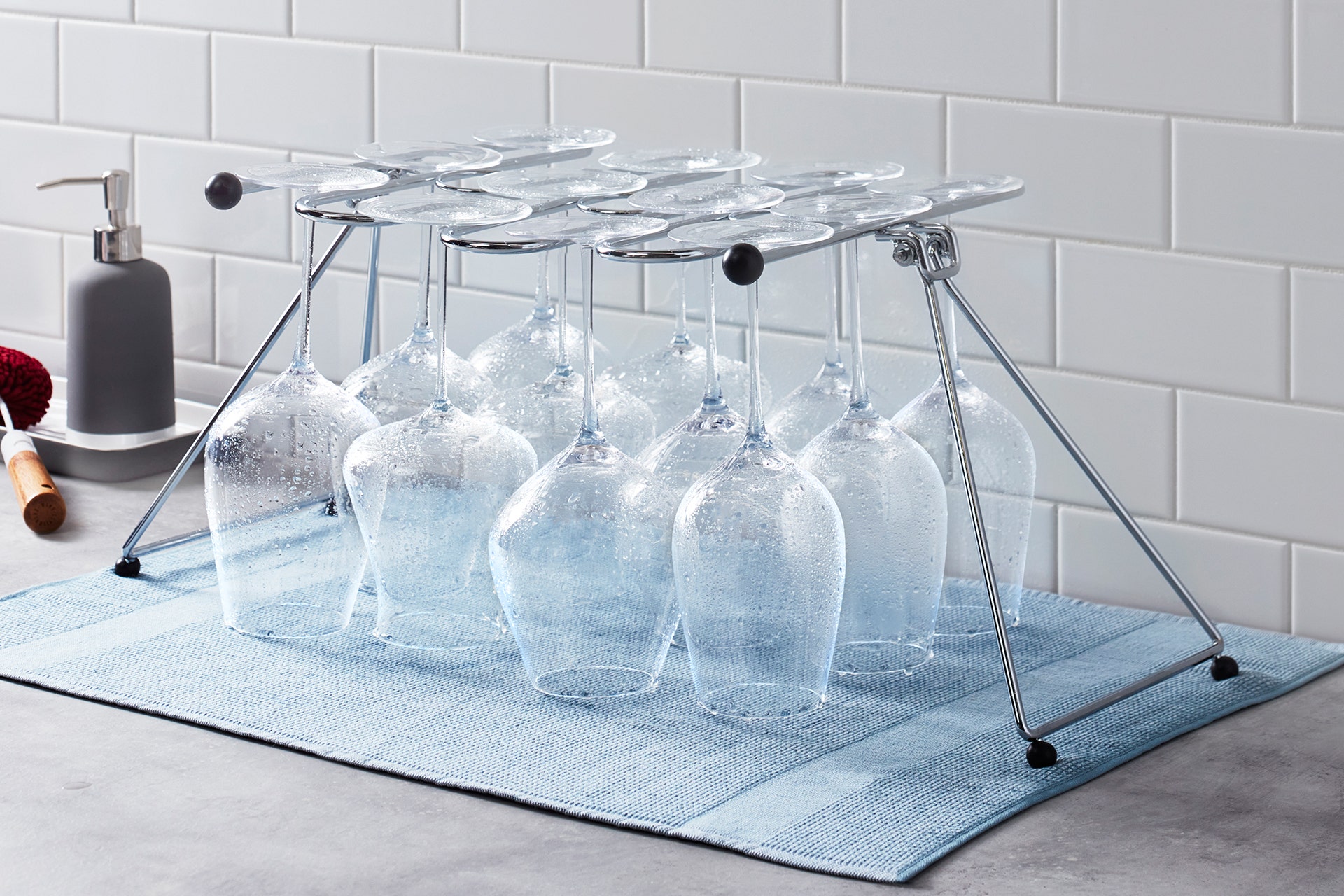 Designed for convenience and spot-free results, our foldable stemware drying rack sits securely on your countertop and can hold up to a dozen stemmed wine glasses. Once dry, it can be easily tucked away in your cabinet or storage drawer until your next sipping occasion.