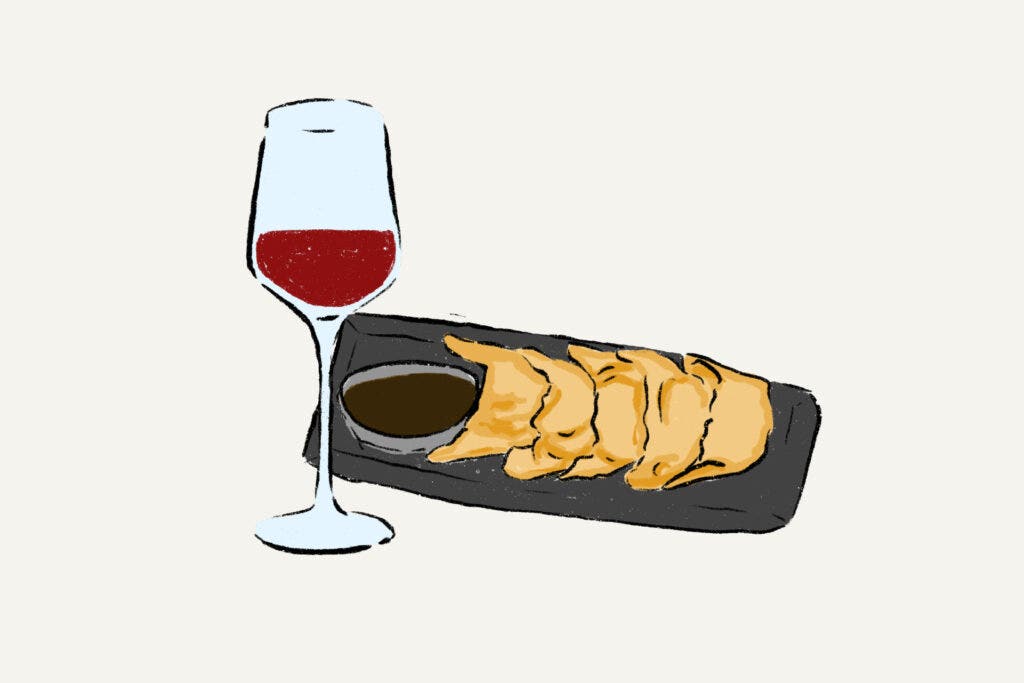 Kat Hawkins, wine director at Miru in Chicago, says that the rich, decadent flavors of a succulent pork gyoza “require something with more depth and concentration.” In particular, Pinot Noir, ideally from Italy.