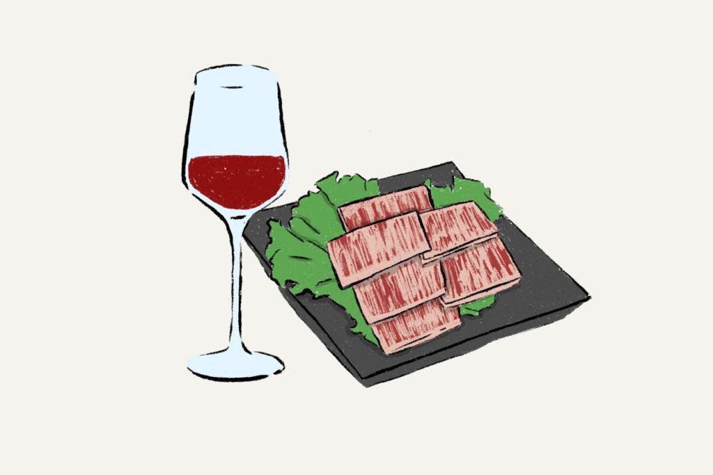 With the Bordeaux, you can “play with the lushness and smoothness of the Merlot to match the impression of sweetness given by the beef while matching the fruit-wrapped tannins of the wine with the high marbling of the meat,” he says.