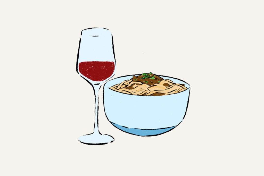 Yet again, you have an option to go red or white. Reilly proposes two different routes—the first being off-dry German Riesling because “the high acidity of this grape cuts through the flavor of rich fried pork,” he says. “Its light sweetness, highlighted by citrus and stone fruit characteristics, play well with full-flavored broth that may or may not have some spice and heat.”
